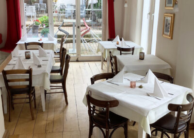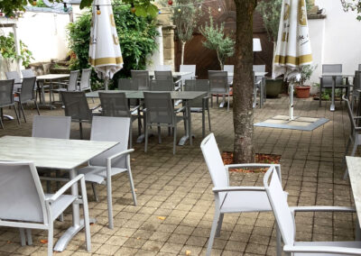 Sie können bei uns im Innen- oder Außenbereich Platz nehmen.