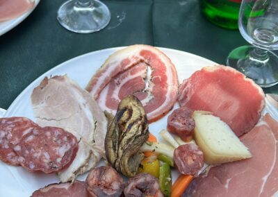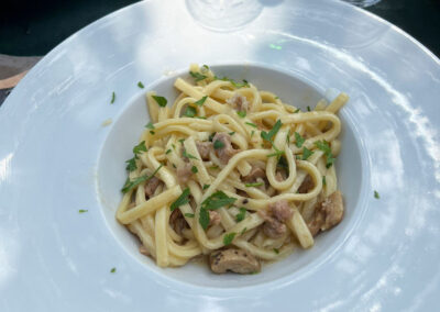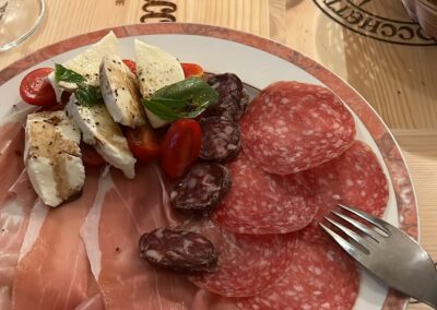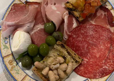 Antipasti, Nudelgerichte, Salate, Fleisch- und Fischgerichte sowie Meeresfrüchte, hausgemachte Desserts wie Tiramisu und Panna Cotta sowie Weine an.
